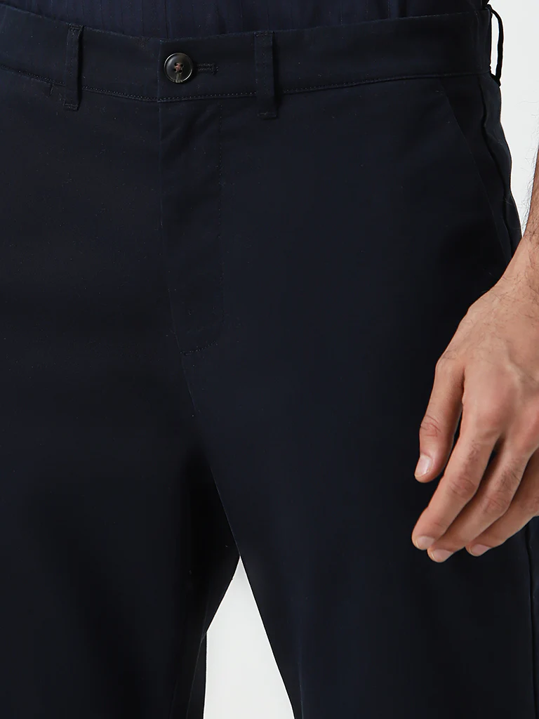 Ascot Navy Solid Relaxed-Fit Mid-Rise Cotton-Blend Chinos