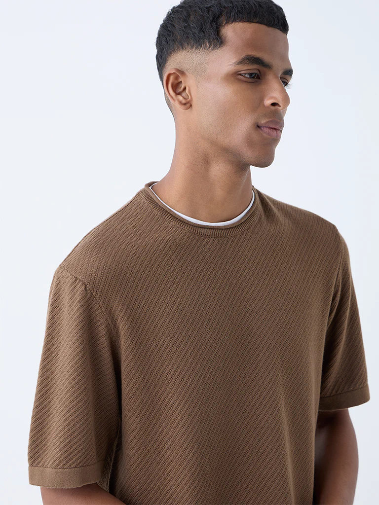 ETA Brown Knit-Textured Relaxed-Fit Cotton T-Shirt