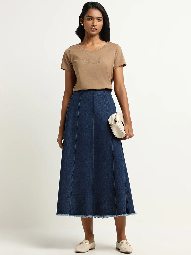 This LOV beige t-shirt features a blush script in delicate perforations, offering a round neck, and short sleeve.