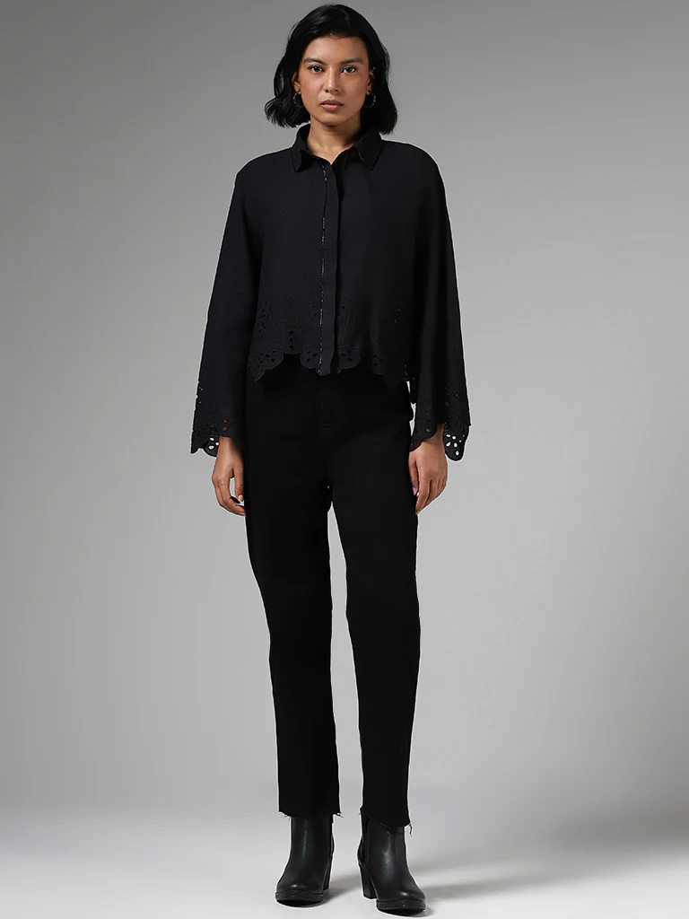 LOV Cut-Work Embroidered Black Shirt
