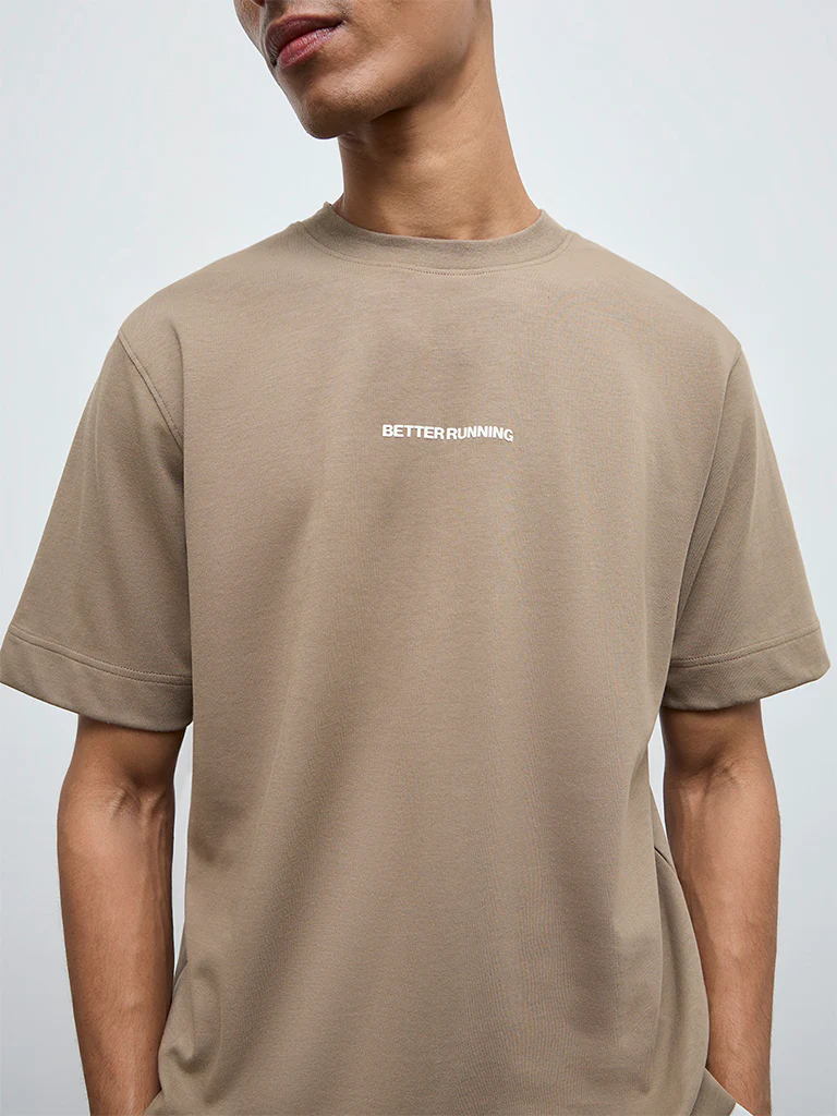 Nuoflexx Brown Typographic Relaxed-Fit Cotton-Blend T-Shirt