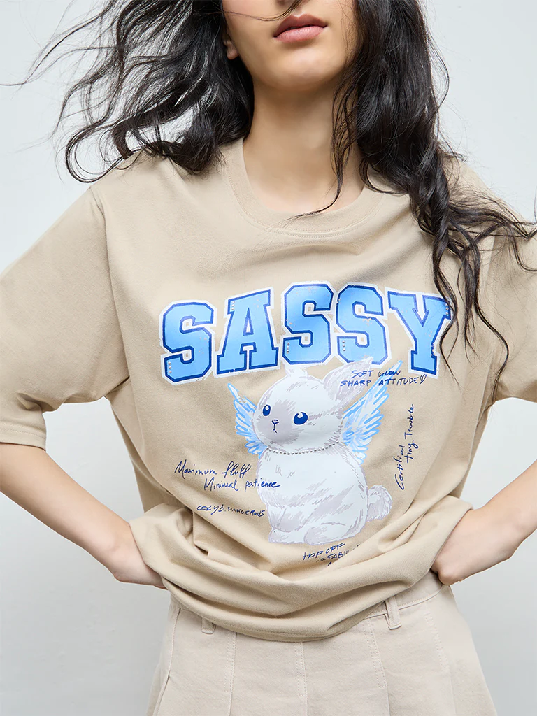 Nuon Beige Graphic Cotton T-Shirt