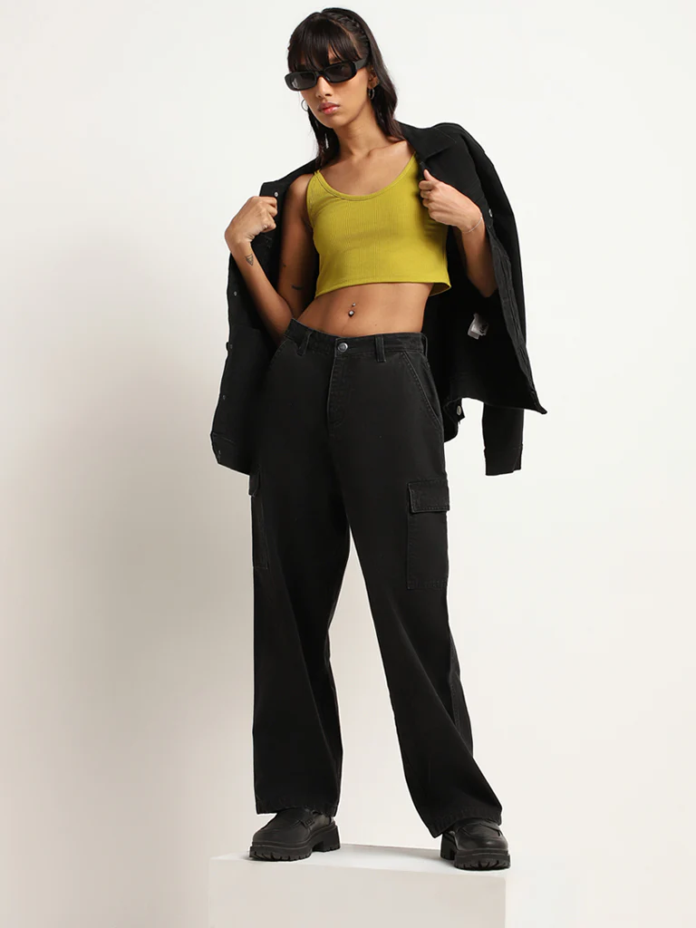 Nuon Green Ribbed Strappy Crop Top