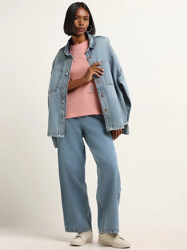 Nuon Pink Contrast Print Cotton Oversized T-Shirt