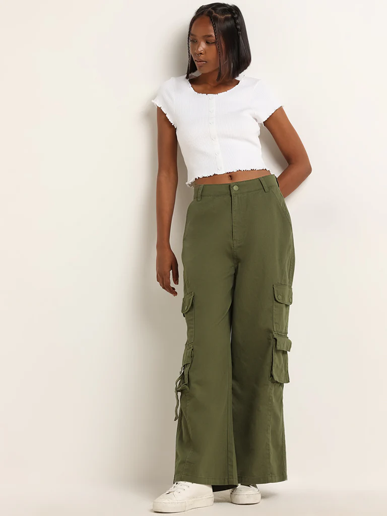 Crafted from a ribbed fabric, this white top by Nuon is complete with a round neck and short sleeves. Style it with jeans of your choice.