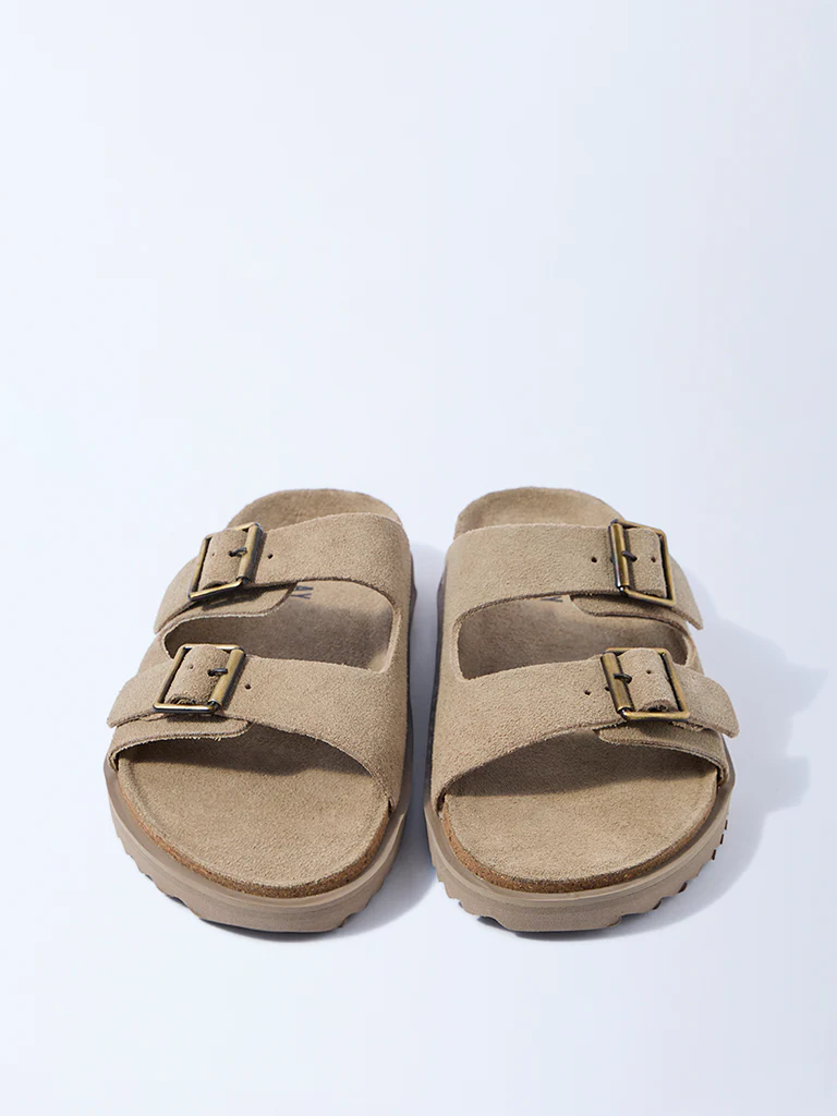 SOLEPLAY Taupe Slip-On Suede Sandals