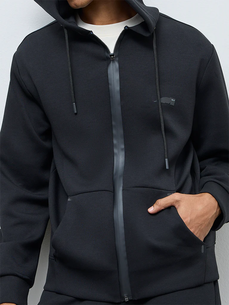 Studiofit Black Hooded Relaxed-Fit Jacket