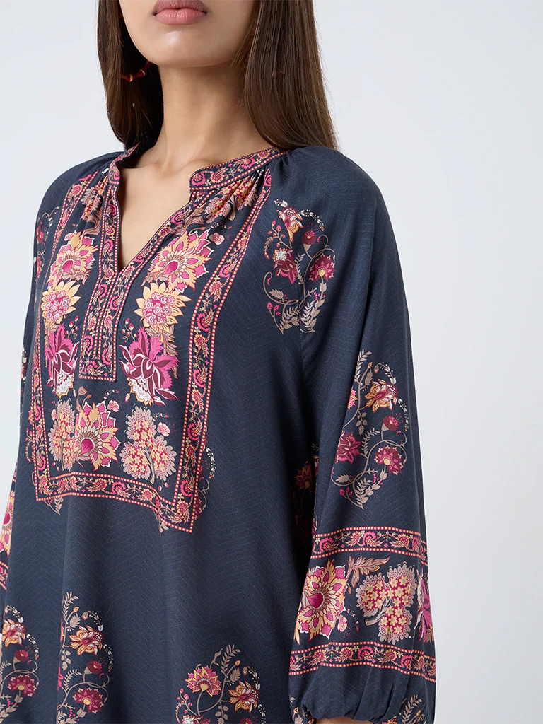 Utsa Black Floral Pattern Tunic
