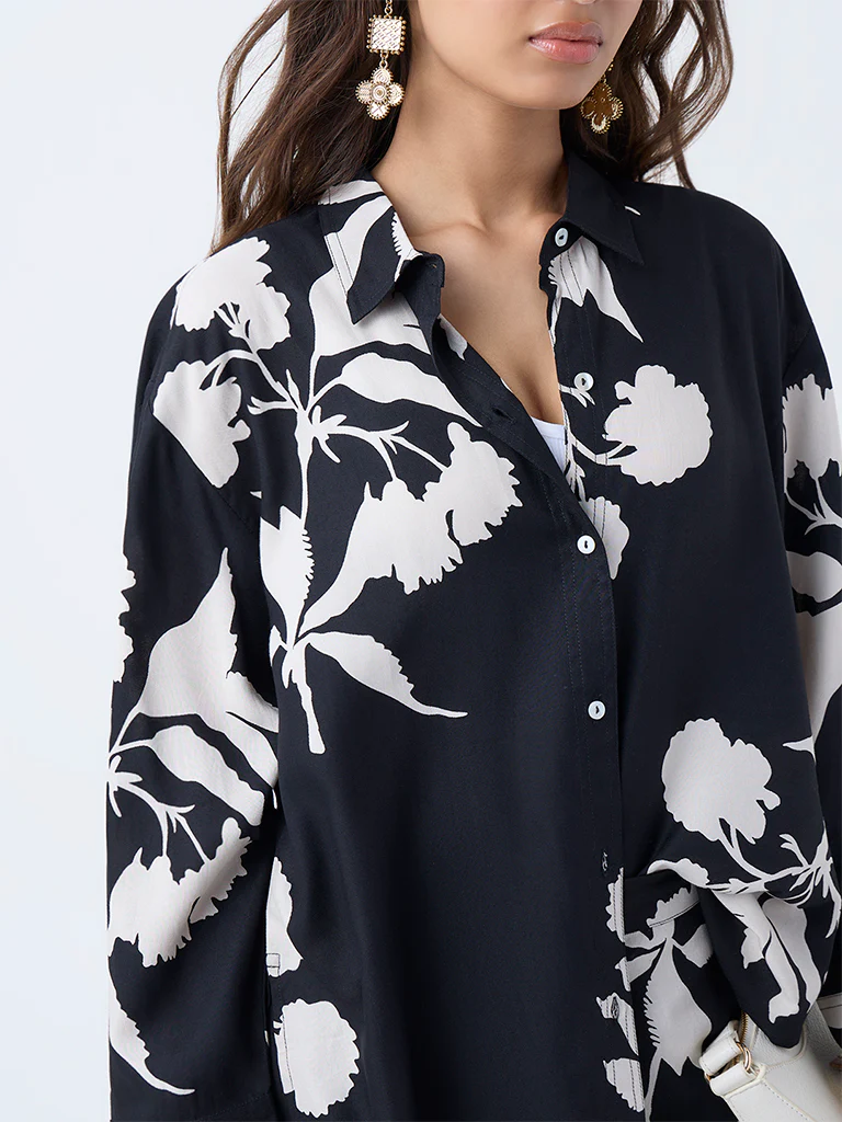 Utsa Black Foliage Pattern Tunic