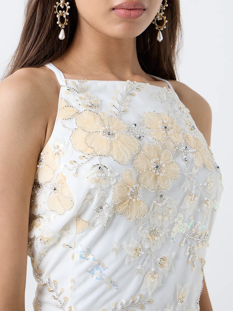 Vark Off-White Floral Embellished Blouse