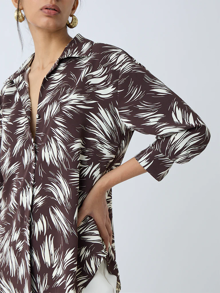 Wardrobe Dark Brown Abstract Design Shirt