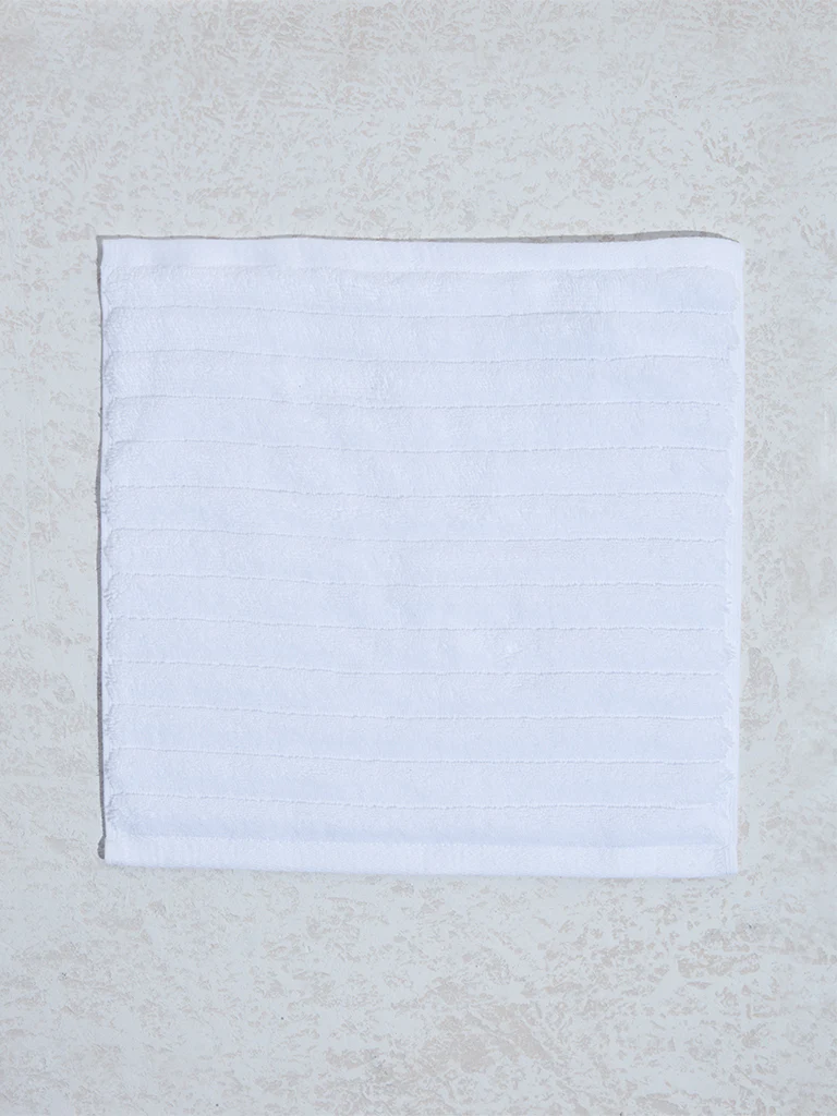 Westside Home White Self-Striped Luxe Face Towel (Set of 2)