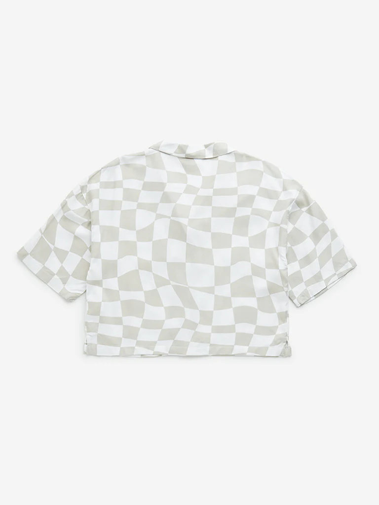 Y&F Kids Girls Beige Checkered Print Cotton Cropped Shirt