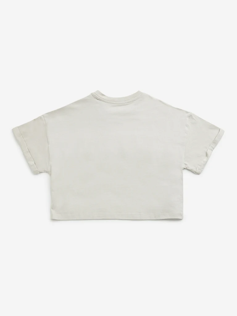 Y&F Kids Girls Beige Text Design Cotton Crop T-Shirt