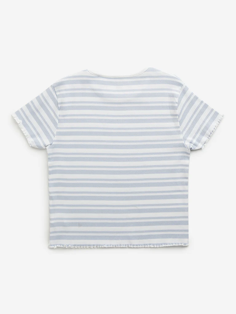 Y&F Kids Girls Blue Stripe Printed Cotton T-Shirt