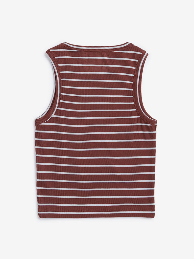 Y&F Kids Girls Brown Ribbed Design Cotton Tank Top